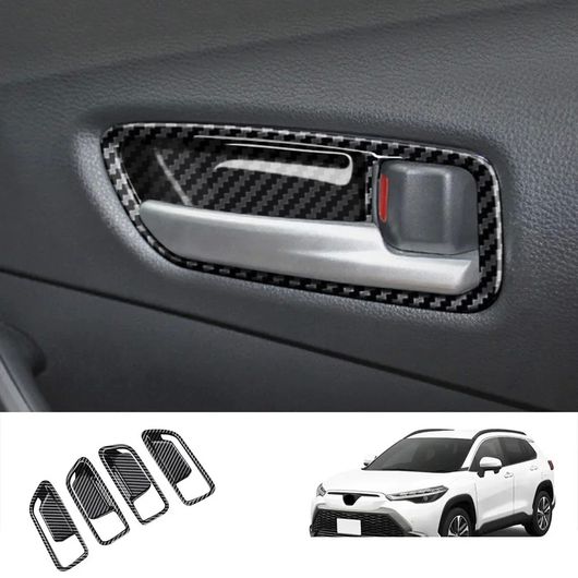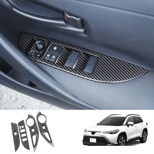 右ハンドル用 インテリア アクセサリー 適用: トヨタ カローラ クロス 2019-2021 2022 2023 カーボンファイバー ウインドウ スイッチ ボタン カバー カップホルダー リア ドリンクホルダー SR-AA-3969