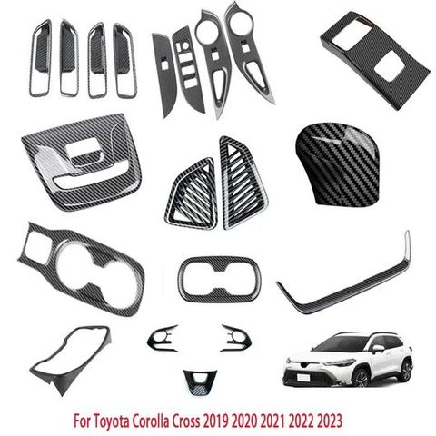 右ハンドル用 インテリア アクセサリー 適用: トヨタ カローラ クロス 2019-2021 2022 2023 カーボンファイバー ウインドウ スイッチ ボタン カバー カップホルダー 11点セット SR-AA-3969