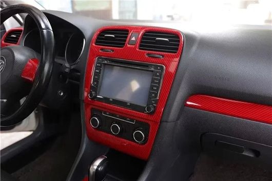 右ハンドル用 適用: フォルクスワーゲン/VOLKSWAGEN ゴルフ 6 GTI MK6 2009-2012 レッド カーボンファイバー ステッカー インテリア アクセサリー センター コントロール ストリップ SR-AA-4027