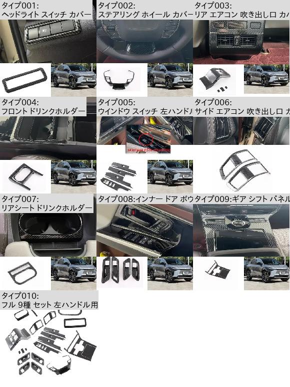 左ハンドル用 適用: トヨタ BZ4X EA10 2022 2023 2024 ABS カーボンファイバー ドア アームレスト ウインドウ リフト スイッチ カバー ギア シフト 通気口 リアシート ドリンクホルダー SR-AA-4702