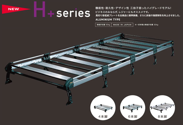 精興工業 SEIKOH セイコー Hプラスシリーズ H+ series キャリア キャリアー キャリヤ キャリヤー ルーフキャリア ルーフキャリアー カーキャリア カーキャリアー 業務用 業務用キャリア 業務用キャリアー 風切音 低減 アルミ 軽量 耐久性 8本脚