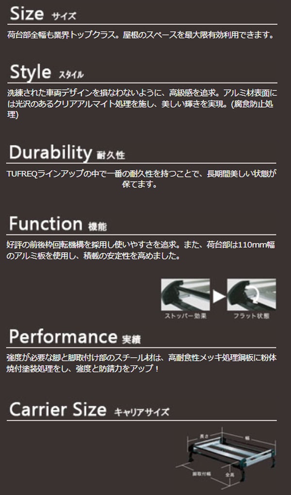 TUFREQ(タフレック) H+シリーズ ルーフキャリア 日産 NV350キャラバン E26 ワイド幅ハイルーフ 2012年06月~ HF442C+