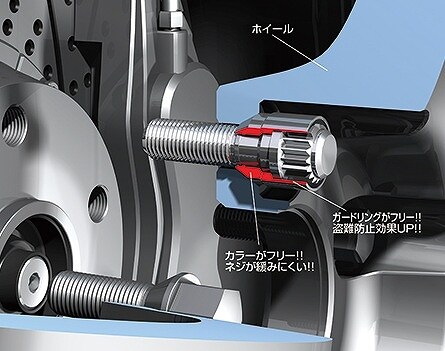 ●「ガードリング」が回転する!!プライヤー等で掴んだ盗難行為を防止します。