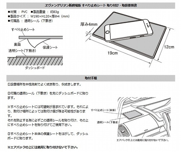 車内の小物、携帯電話など、ピッタリくっつくすべり止めシートをNERVロゴで新デザインにて商品化しました。インテリアにEVAを演出する、お勧めの一品です。