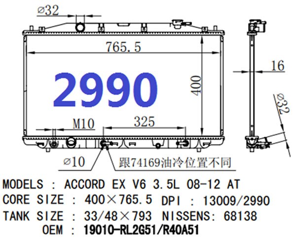 ラジエーター ホンダ アコード CW2 AT 2008年12月~ AP-KBR-0040