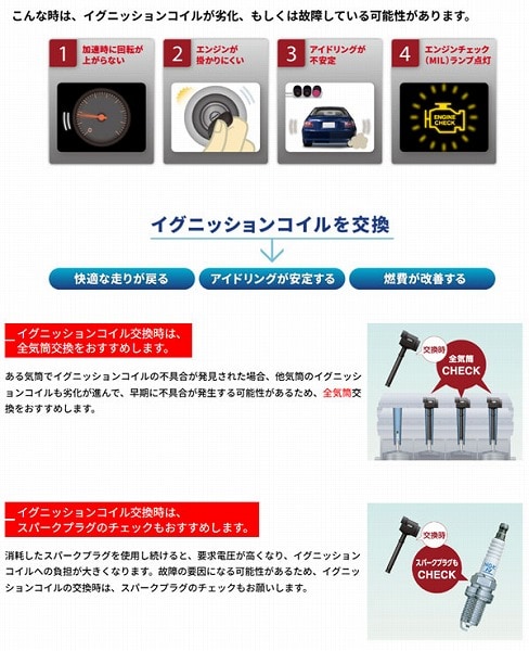 エヌジーケー 日本特殊陶業 イグニッション コイル スパークコイル エンジン 変圧器 点火コイル 燃費 交換 取り換え 修理 互換 故障 破損 補修 部品 パーツ IGコイル