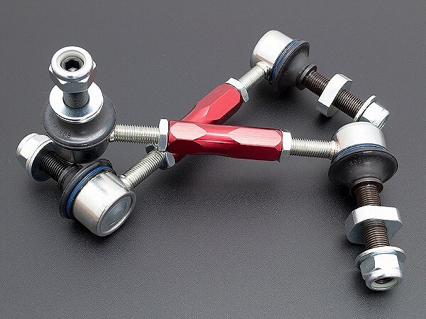 そこで調整式のスタビリンクで元通りの角度に調整し純正スタビライザーの役割機能を復活させます。