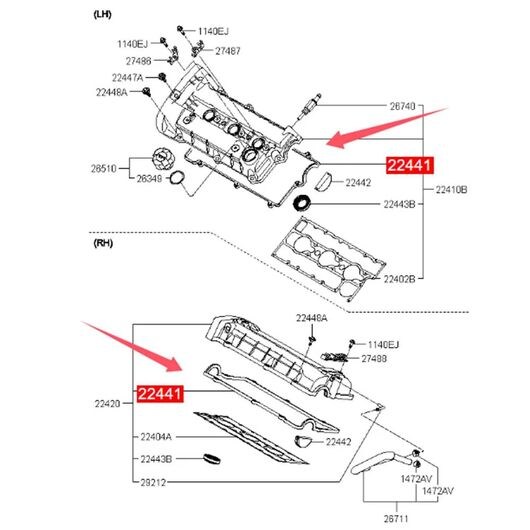 適用: ヒュンダイ/現代/HYUNDAI クーペ サンタフェ ソナタ トラジェ ツーソン XG 起亜 マジェンティス スポーテージ バルブ カバー ガスケット 2244137110 シール パーツ アクセサリー タイプ001 SR-AA-7431