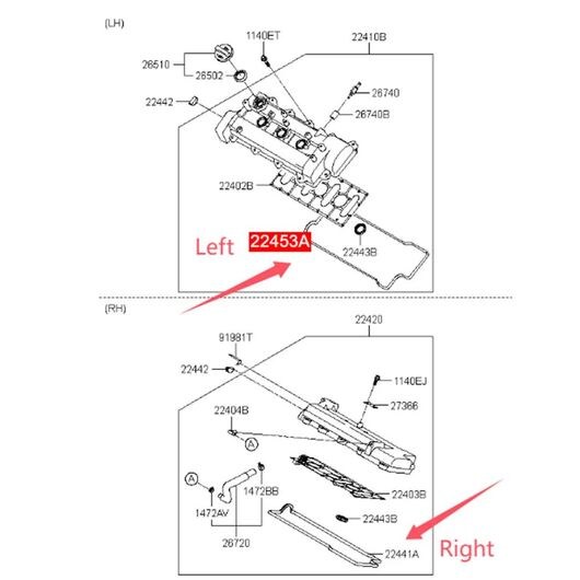 適用: ヒュンダイ/現代/HYUNDAI グレンジャー サンタフェ 起亜 グランド カーニバル オピラス バルブ カバー ガスケット 224413E011 224413E021 シール パーツ アクセサリー 左・右 SR-AA-7433