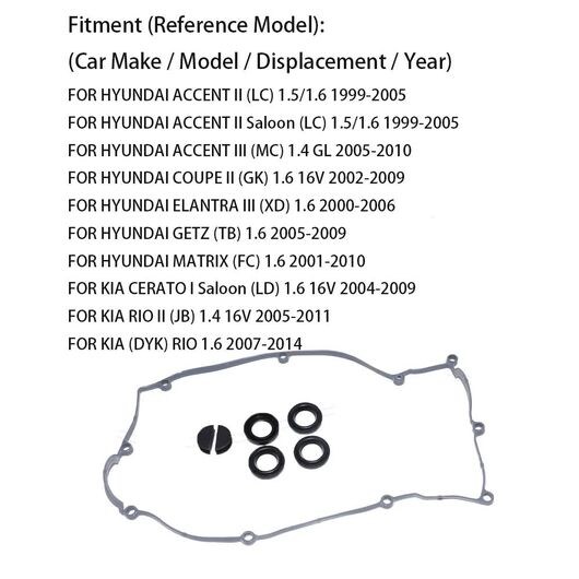適用: ヒュンダイ/現代/HYUNDAI アクセント クーペ エラントラ ゲッツ マトリックス 起亜 セラトー リオ バルブ カバー ガスケット 2244126020 1.4 1.5 1.6 シール パーツ アクセサリー ブラック SR-AA-7434