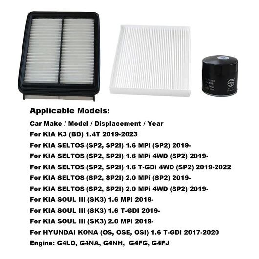 3ピース フィルター セット 適用: 起亜 セルトス 1.6T 2020 ソウル III SK3 K3 BD 1.4T/ヒュンダイ/現代/HYUNDAI コナ 2017 エンジン キャビン エア オイル フィルター 3ピース セット SR-AA-7443