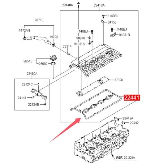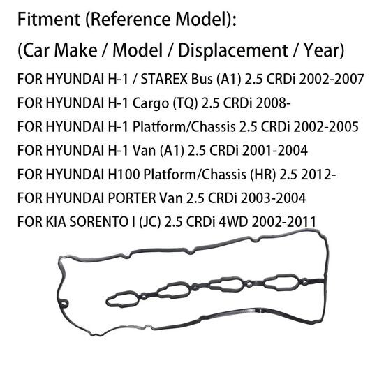 適用: ヒュンダイ/現代/HYUNDAI H-1 H100 ポーター 起亜 ソレント バルブ カバー ガスケット 224414A000 2002-2007 2008 2012 シール パーツ アクセサリー ブラック SR-AA-7448