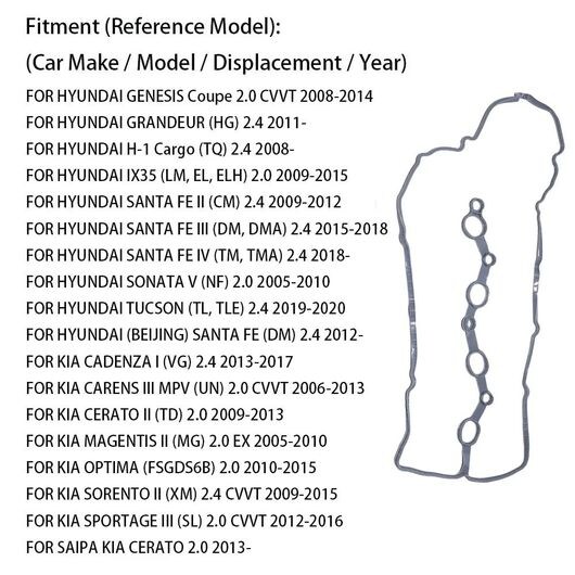 適用: ヒュンダイ/現代/HYUNDAI ジェネシス グレンジャー IX35 サンタフェ ソナタ ツーソン 起亜 カデンツァ セラトー スポーテージ バルブ カバー ガスケット 224412G100 シール パーツ グレー SR-AA-7452