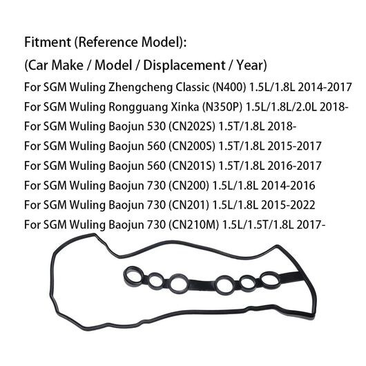 適用: SGM ウーリン N400 N350P 宝駿 530 560 730 バルブ カバー ガスケット 23900645 1.5L 1.5T 1.8L 2015-2022 シール パーツ アクセサリー ブラック SR-AA-7486