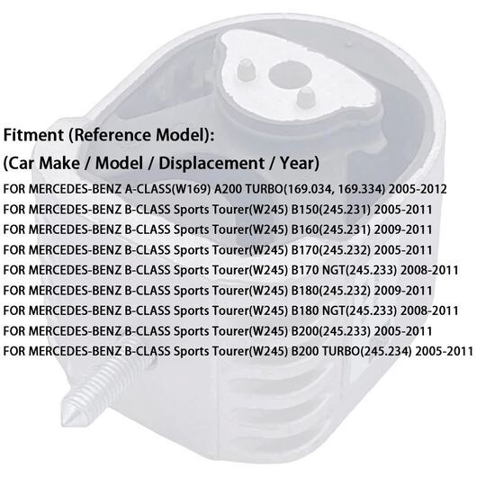 適用: メルセデス-ベンツ A-クラス W169 B スポーツ ツアラー W245 エンジン マウント 1692401517 2005-2011 ブラケット サポート アクセサリー SR-AA-7649