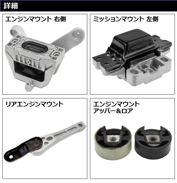 エンジンマウントセット フォルクスワーゲン ニュービートル 9C 2006年~2010年 入数:1セット(5個)