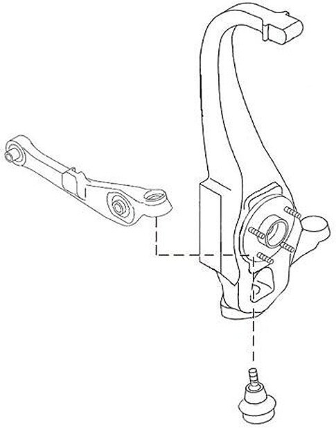 ※適用の車両はマルチリンクタイプでナックルにボールジョイントが組み込まれております。そのため、ロワアームフロント側とナックルに結合しております。リア側のロワアームボールジョイントブーツは、品番が異なるため使用できません。