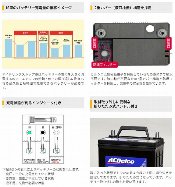 EFBM42R エーシーデルコ カーバッテリー 自動車用バッテリー メンテナンス メンテナンス用品 バッテリー バッテリ Premium EFB アイドリングストップ車用バッテリー 国産車用バッテリー アイドリングストップ車 IS車 充電制御車 国産車 アイドルストップ対応 二重カバー 2重カバー インジケータ―付き インジケータ―付 折り畳み式ハンドル 折りたたみ式ハンドル 折り畳みハンドル 折りたたみハンドル