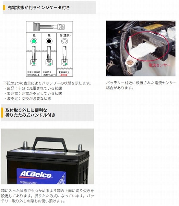 エーシーデルコ カーバッテリー 自動車用バッテリー メンテナンス メンテナンス用品 バッテリー バッテリ Premium AMS 充電制御車用バッテリー 国産車用バッテリー 充電制御車 国産車 二重カバー 2重カバー インジケータ―付き インジケータ―付 折り畳み式ハンドル 折りたたみ式ハンドル 折り畳みハンドル 折りたたみハンドル