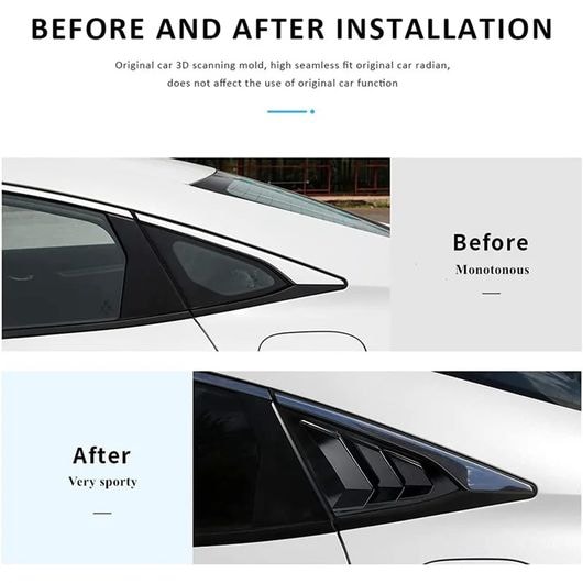 リア サイド ウインドウ ルーバー 適用: ホンダ シビック セダン 2016-2021 アクセサリー 通気口 スクープ カバー-光沢 ブラック SR-AA-8515