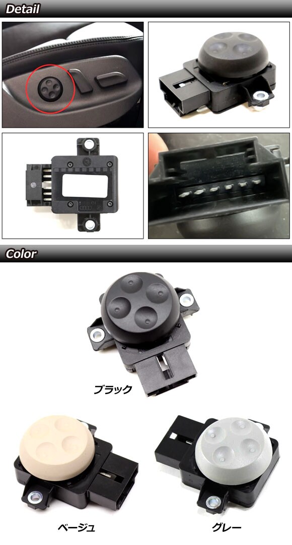 パワーシートスイッチ グレー 6ピン アウディ 汎用 TTクーペ Q5 A3 A4 など AP-EC938-GYのレビュー