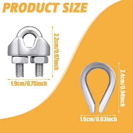 40 ピース 1/8インチ ワイヤー ロープ キット M3 金属 ワイヤー ロープ ケーブル クランプ M3 ステンレス スチール シンブル SR-BB-0031