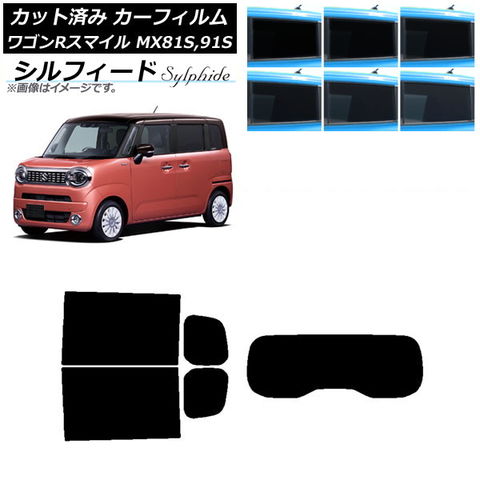 カーフィルム スズキ ワゴンRスマイル MX81S MX91S リア小窓アンテナ有 2021年9月~ リアセット(1枚型) シルフィード 選べる6フィルムカラー AP-WFSC0156-RDR1