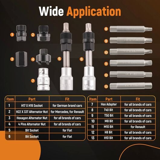 専用 セット スプライン スター ソケット ビット 適用: リムーブ フリーホイール ドライブ プーリー-タイプ オルタネーター SR-BB-2842