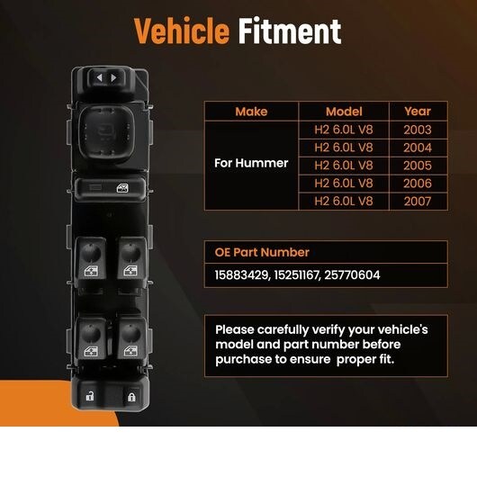 25770604 ドライバ サイド マスター パワー ウインドウ コントロール スイッチ 適用: ハマー/HUMMER H2 2003-2007 15883429 15251167 SR-BB-3068