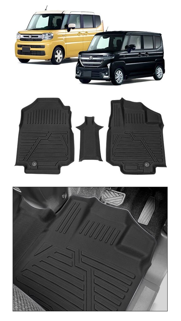 3D フロアマット 運転席/助手席用 スズキ スペーシア/スペーシアカスタム MK04系 2023年11月~ TPE素材 立体構造 防水仕様 入数:1セット(3個) AP-IT3918