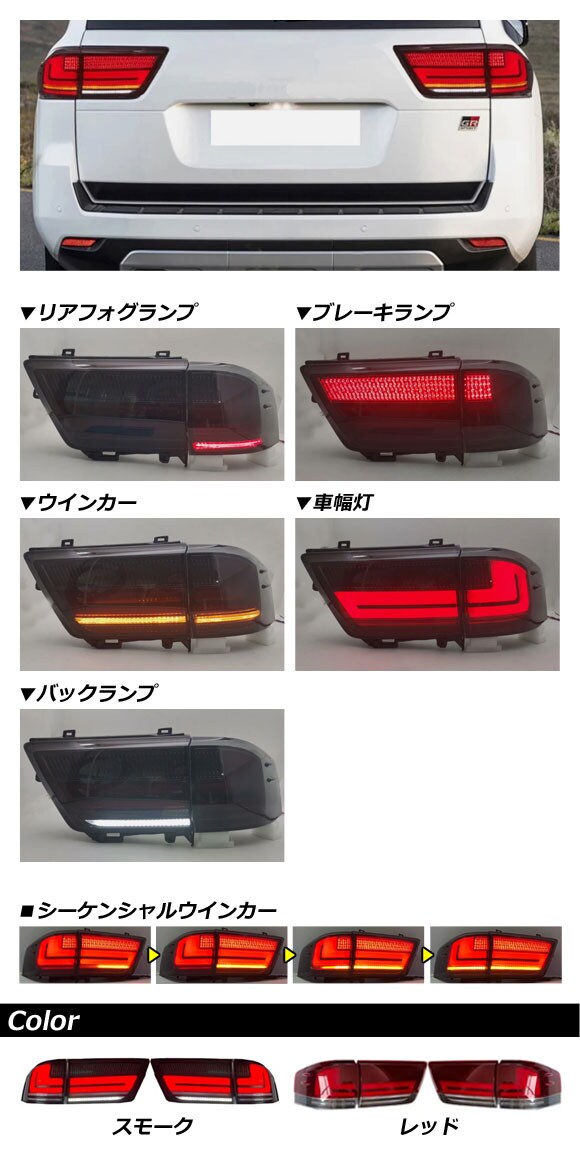 LEDテールランプ トヨタ ランドクルーザー 300系 2021年08月~ スモーク シーケンシャルウインカー連動 入数:1セット(左右) AP-RF345-SM