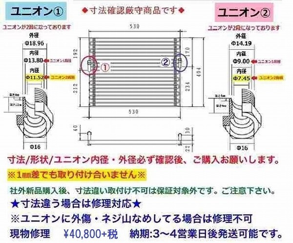 ※現車寸法確認厳守商品です。ユニオン2段目要注意。1mm差で取付け合いません。