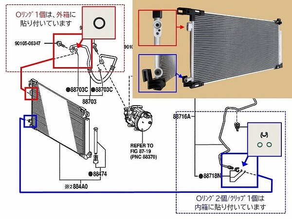 高圧側Oリング1個/低圧側Oリング2個/クリップ1個付き