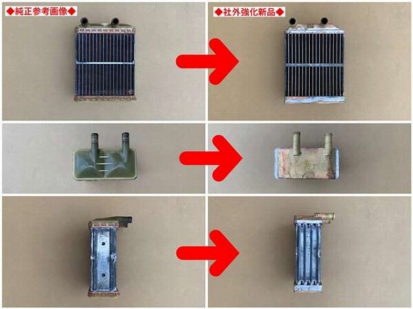 純正:銅コア/プラスチックタンク製→社外:銅コア/真鍮タンク製