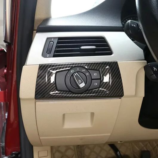 適用: BMW 3シリーズ E90 E92 E93 2005-2012 カーボン パターン ヘッドライト スイッチ フレーム トリム 左ハンドル用 インテリア 装飾 アクセサリー SR-BB-4281