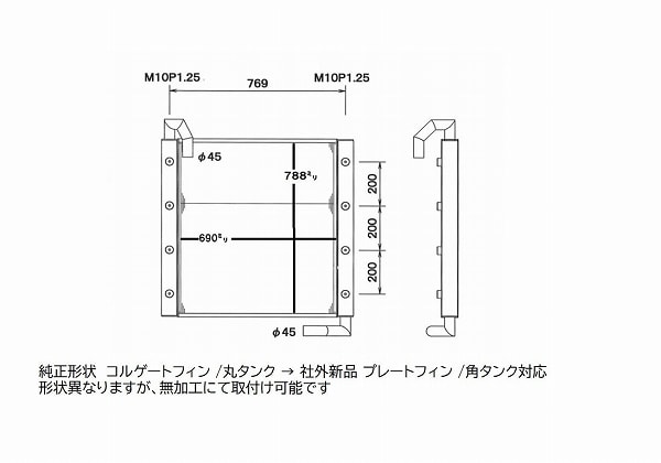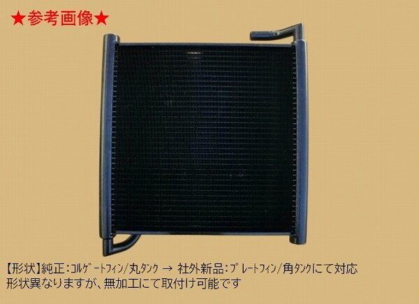 純正:コルゲートフィン/丸タンク→社外:プレートフィン/角タンク