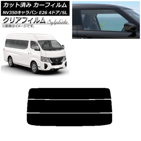 ニッサン 2012年06月~ NV350 キャラバン CARAVAN 4D 片側スライドドア スーパーロング 標準 カーフイルム フィルム フイルム スモークフィルム スモークフイルム スモーク ウィンドウフィルム ウインドウフィルム ウィンドウフイルム ウインドウフイルム カットフィルム カットフイルム カット カット済み カット済 車種専用 専用 リア リヤ リアドア バックドア バック rear 後ろ 分割 シルフィード IKCS Sylphide 原料着色タイプ 原着タイプ 原着 UPF50+