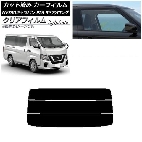 ニッサン 2012年06月~ NV350 キャラバン CARAVAN 5D 両側スライドドア ロング 標準 カーフイルム フィルム フイルム スモークフィルム スモークフイルム スモーク ウィンドウフィルム ウインドウフィルム ウィンドウフイルム ウインドウフイルム カットフィルム カットフイルム カット カット済み カット済 車種専用 専用 リア リヤ リアドア バックドア バック rear 後ろ 分割 シルフィード IKCS Sylphide 原料着色タイプ 原着タイプ 原着 UPF50+