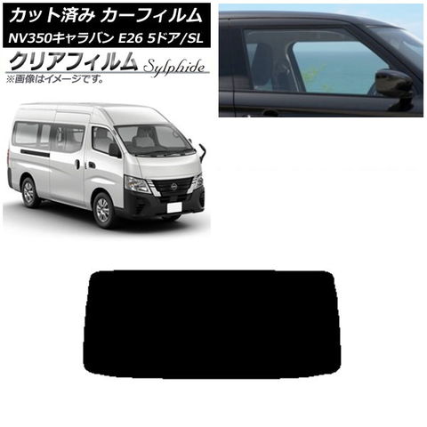 カーフィルム NV350キャラバン E26 バン 5ドア スーパーロング/標準 リアガラス(1枚型) クリアフィルム FGR900UV AP-WFFG0127-R1