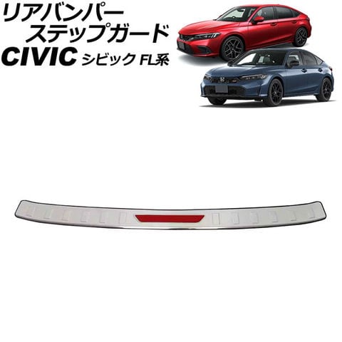 リアバンパーステップガード ホンダ シビック FL系 2021年09月~ シルバー×レッド ステンレス製 AP-SG396-SIRD