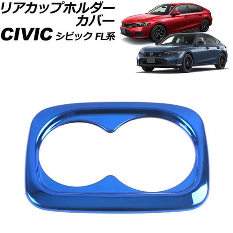 リアカップホルダーカバー ホンダ シビック FL系 2021年09月~ ブルー ステンレス製 AP-IT3952-BL