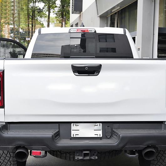 適用: ダッジ・ラム 1500 TRX 2021 2022 2023 ABS エクステリア テールゲート ドア ハンドル ボウル カバー トリム 2ピース カーボン スタイル・光沢ブラック SR-BB-5407