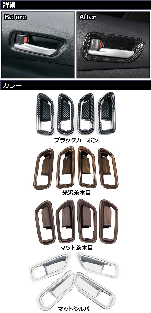 インナードアハンドルカバー トヨタ カローラスポーツ/ツーリング 210系 全グレード対応 2018年06月~ ブラックカーボン ABS製 入数:1セット(4個) AP-IT3979-BKCのレビュー