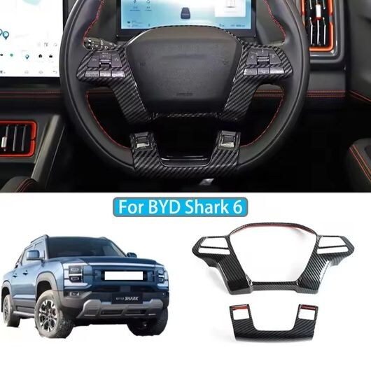 適用: BYD シャーク 6 2024 2025 ABS インテリア ステアリング ホイール パネル 装飾 カバー トリム モールディング ステッカー 2ピース SR-BB-5936