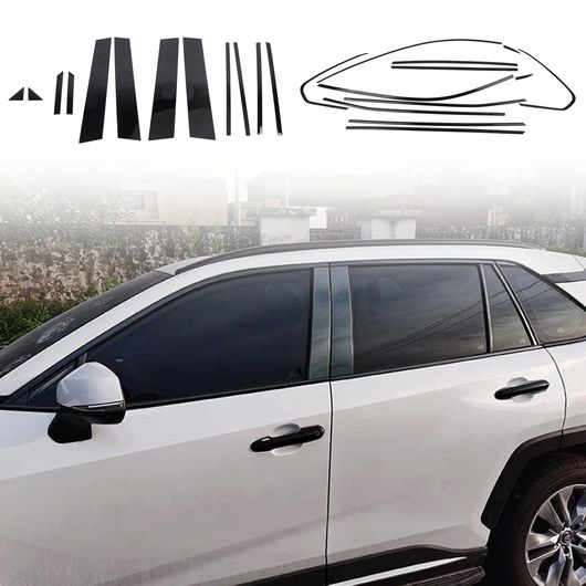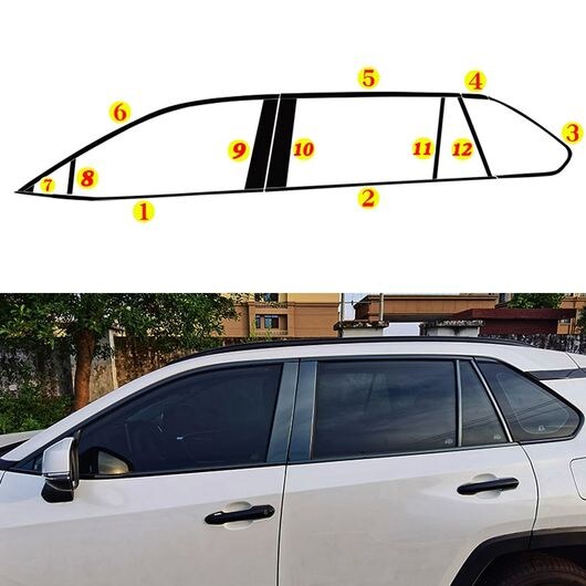 適用: トヨタ RAV4 2019-2025 ウインドウ モールディング ミドル ピラー シル モールディング カバー トリム エクステリア アクセサリー スチール ブラック 24ピース SR-BB-6213