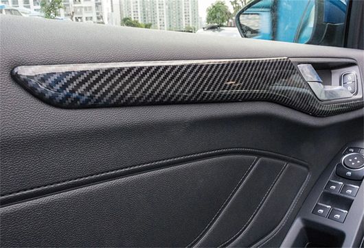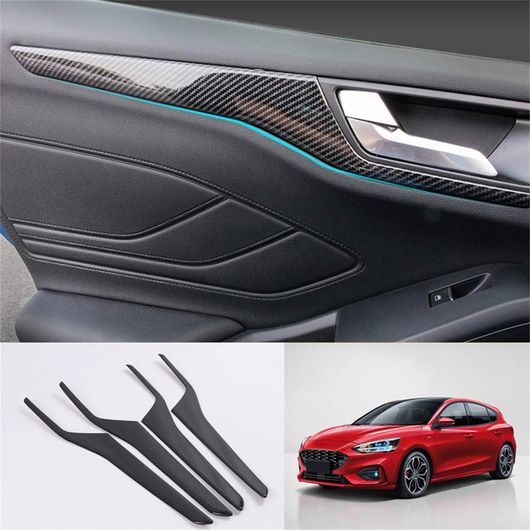 適用: フォード/FORD フォーカス MK4 ハッチバック 2019-2022 カーボン ブラック インテリア ドア アームレスト ストリップ インテリア モールディング トリム ABS 4ピース SR-BB-6356