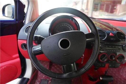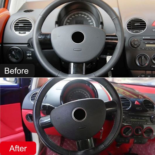 適用: フォルクスワーゲン/VOLKSWAGEN ビートル 2003-2010 カーボン ブラック インテリア ステアリング ホイール カバー トリム 3ピース SR-BB-6521