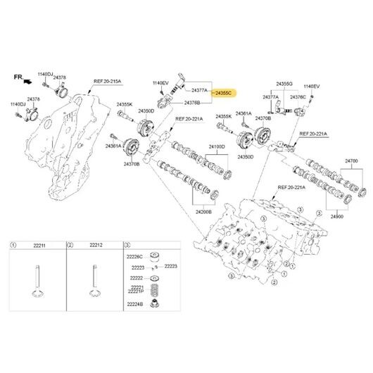 24360-3CAA2 エンジン オイル コントロール バルブ 適用: ジェネシス G70 G80 G90 ヒュンダイ/現代/HYUNDAI パリセード サンタフェ アゼーラ 2012-2024 3.3L 3.8L V6 エンジン SR-BB-7199