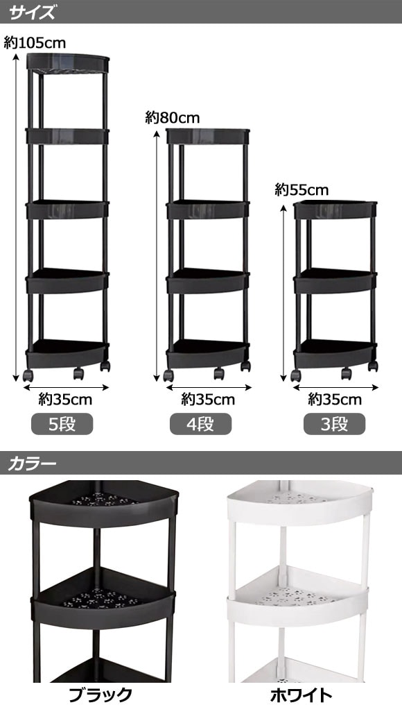 コーナーラック ブラック 3段 キャスター付きで移動も楽々!軽くてしっかり設計 通気性も抜群 AP-UJ1133-BK-3L