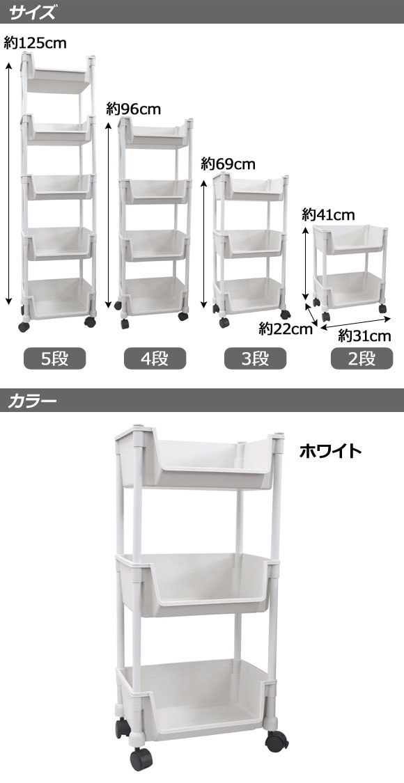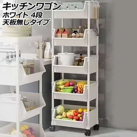 キッチンワゴン ホワイト 4段 天板無しタイプ キャスター付きで移動も楽々!軽くてしっかり設計 AP-UJ1135-WH-4L